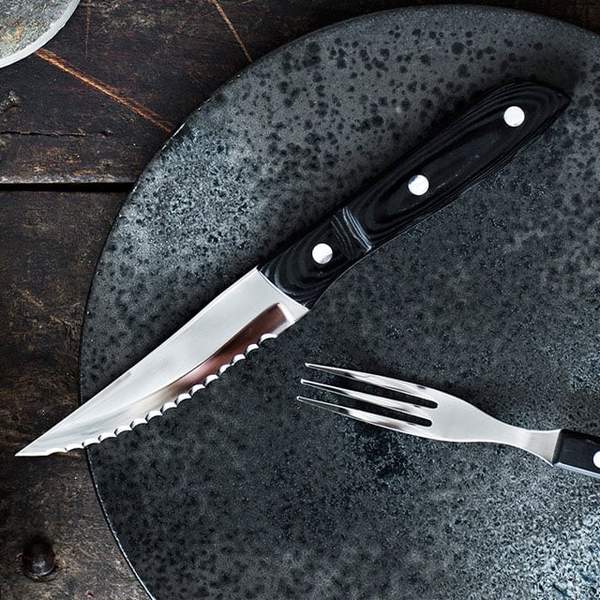 Yleensä grillivälineissä on terävät sahalaitaiset veitset, jotka leikkaavat helposti läpi lihapaloihin, grillattuihin raaka-aineisiin tai pizzaan. Ei ole epätavallista, että grillivälineiden kahvat on valmistettu puusta, mutta kyse on enemmän designista kuin toiminnallisuudesta.