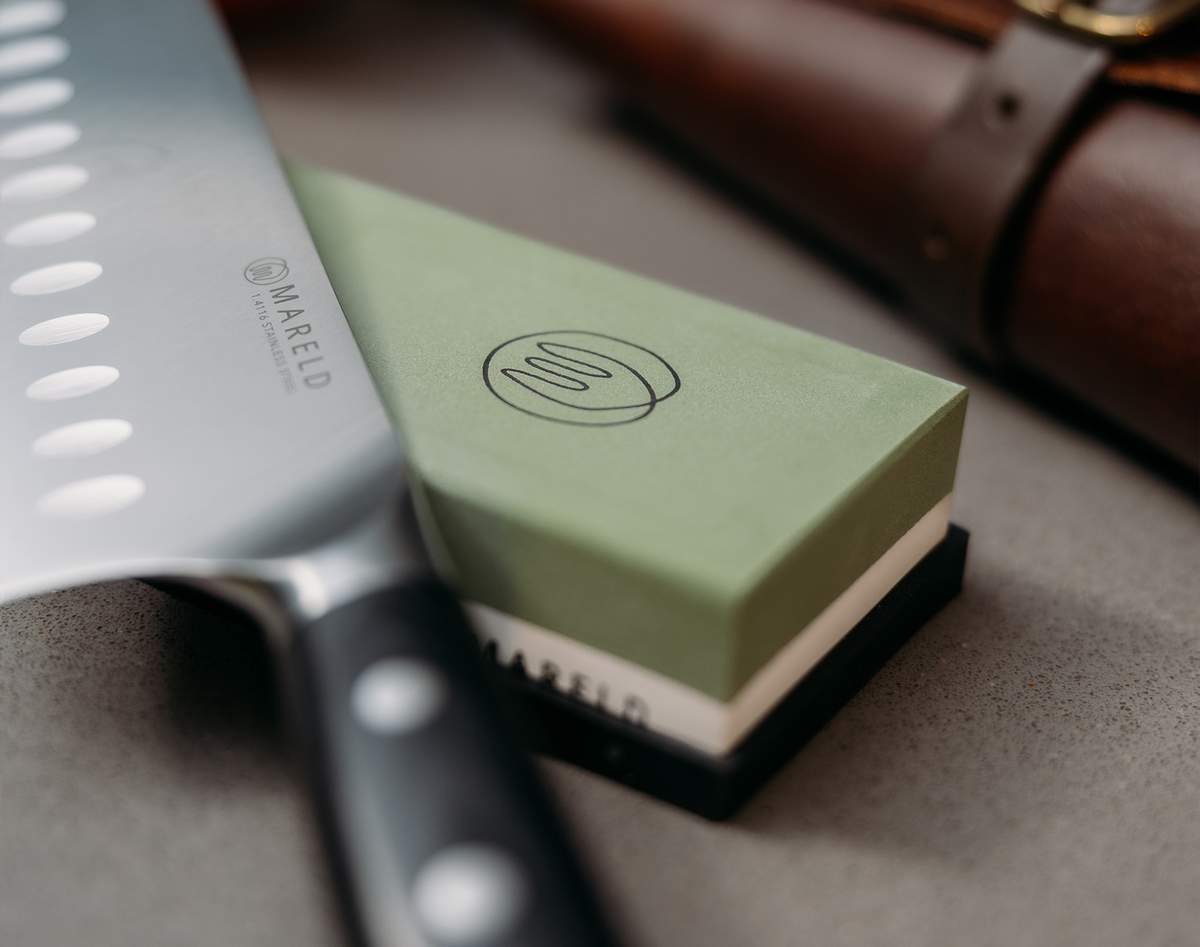 Karkeus: Mitä pienempi karkeus, sitä karkeampi kivi ja sitä enemmän terästä hiotaan pois. Asteikko vaihtelee yleensä matalasta (esim. 150) korkeaan (esim. 4000). Menet eri vaiheissa parhaiden tulosten saavuttamiseksi.