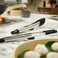 Keittiötarvikkeiden päät kestävät kuumuutta 210 °C:n lämpötilaan asti, kun taas pihdit kestävät jopa 270 °C:n lämpötilaa. Ne soveltuvat käytettäväksi kaikenlaisten keittoastioiden kanssa, myös tarttumattoman pinnan omaavien. Keittiövälineissä on kuumuutta kestävät silikonipäät, tyylikkäät ruostumattomasta teräksestä valmistetut kahvat ja integroidut välinetuet, jotka estävät päiden joutumisen kosketuksiin työtason kanssa, kun ne lasketaan alas. Tämä parantaa hygieniaa keittiössä ja vähentää sotkua ja roiskeita työtasolla ruoanlaiton aikana.