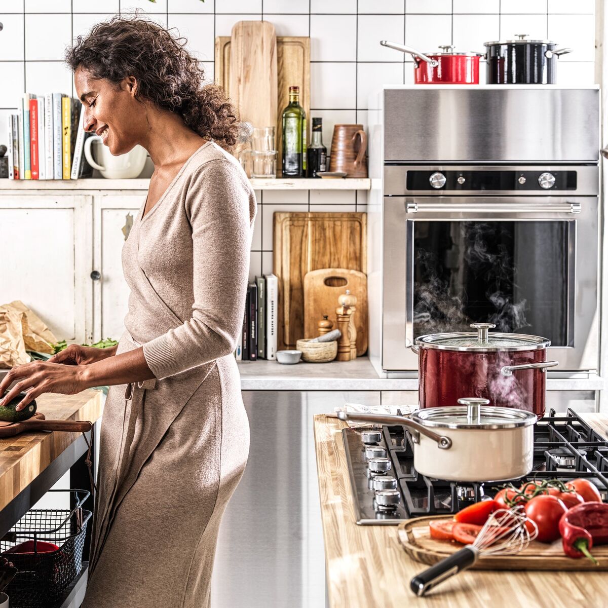Lisää valoisaa ja tyylikästä designia keittiöön KitchenAidin mantelinvärisellä kattilalla. Mukana on karkaistu lasikansi, ja kattilassa on ergonominen kädensija, joka pysyy viileänä käytön aikana, joten et polta sormiasi.