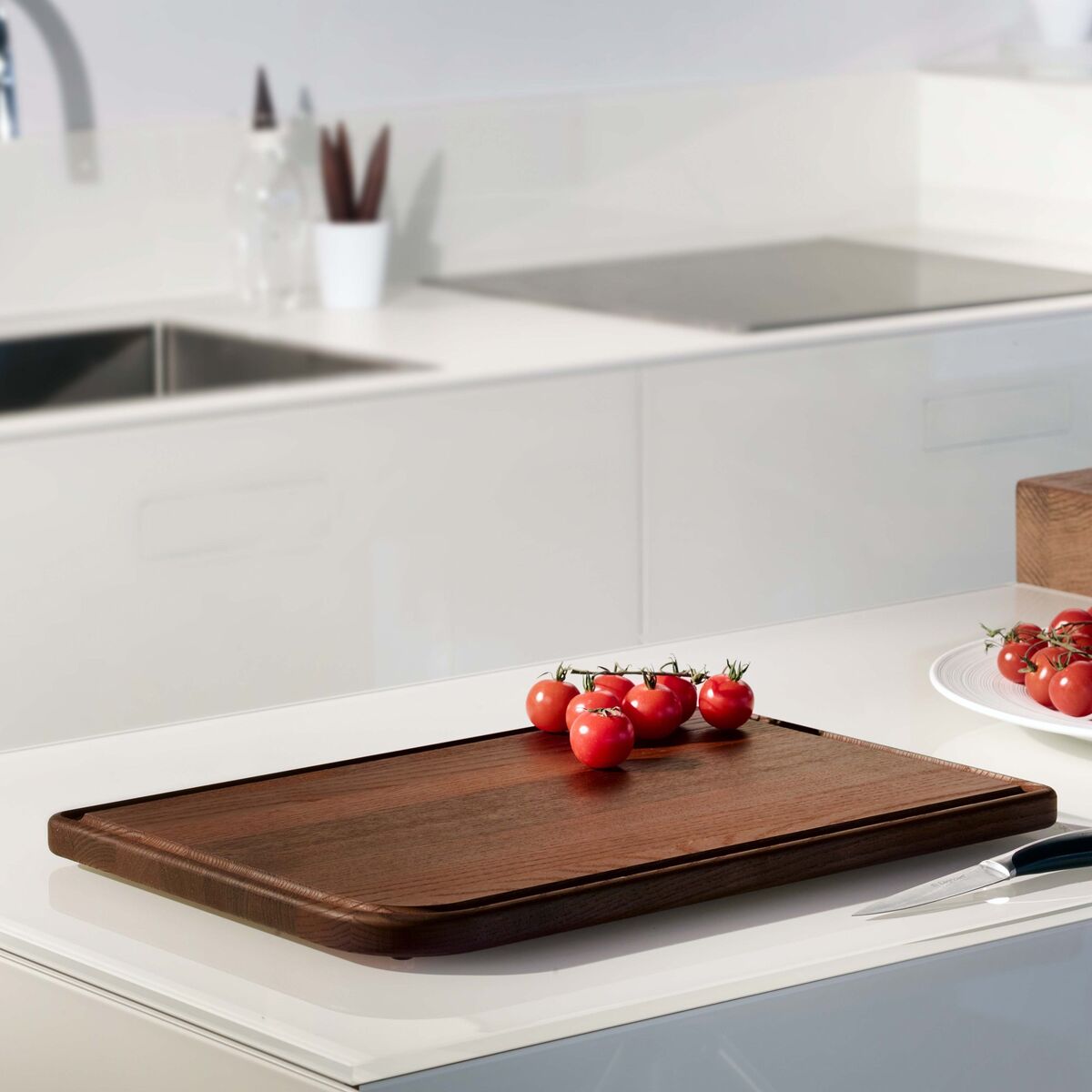 Leikkuulauta on käsintehty ja 100-prosenttisesti luonnonmukainen, mikä korostaa Legnoartin sitoutumista kestävään kehitykseen. Lisäksi leikkuulauta on vedenkestävä ja ulkoisia vaikutuksia kestävä, joten se sopii erinomaisesti sekä sisä- että ulkokäyttöön. Leikkuulaudan reunalla kulkeva käytännöllinen kouru kerää tehokkaasti mehut ja öljyn pois, mikä helpottaa ja hygieenistää ruoanlaittoa. Tämä leikkuulauta on täydellinen yhdistelmä toimivuutta, laatua ja ajatonta muotoilua.
