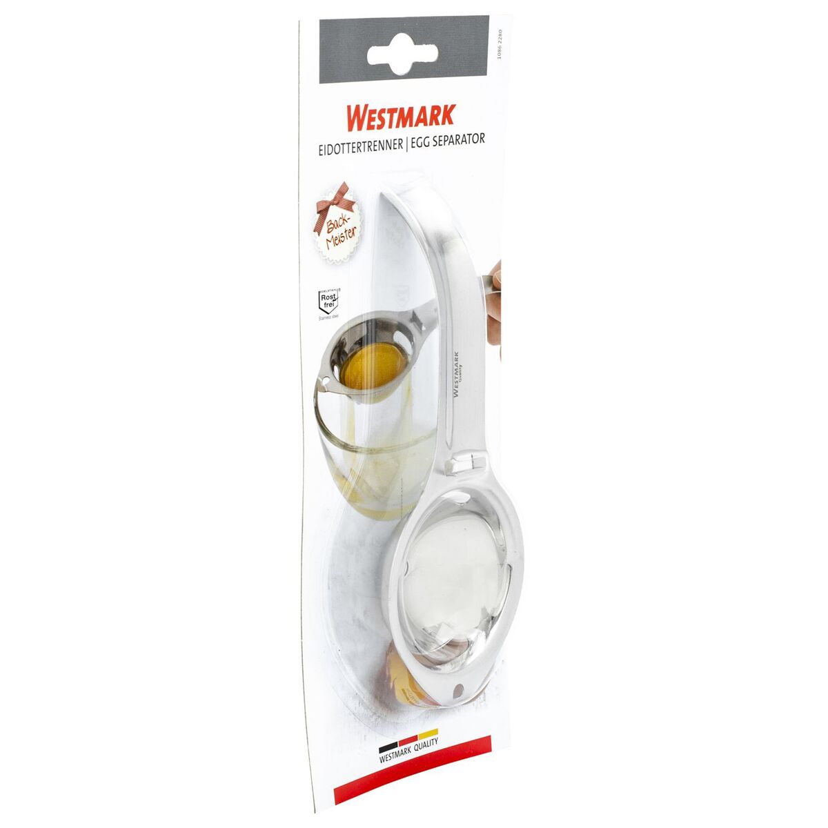 Westmarkin kananmunan erottimella erotat keltuaisen valkuaisesta nopeasti ja helposti. Rikot kananmunan kahvasta yksinkertaisella napautuksella ja asetat sen sitten erottimeen. Kaikki munanvalkuainen valuu ulos reiän kautta ja keltuainen jää kokonaisena ja hienona munanerottimeen. Erinomainen, kun teet marenkia tai tarvitset vain nopeasti keltuaisen.
