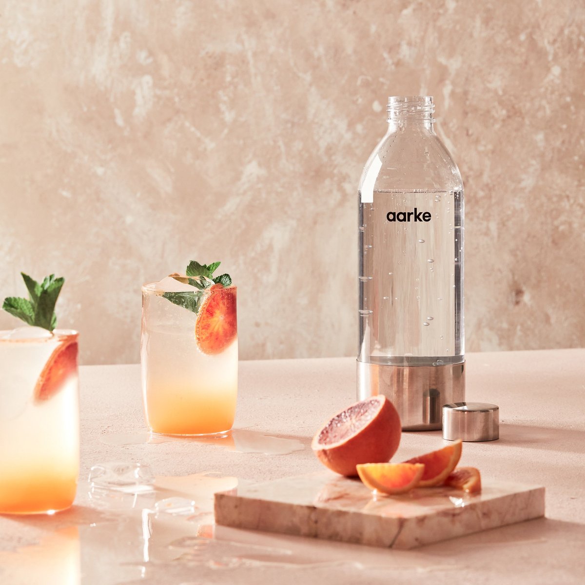 Tämä Aarken PET-muovista valmistettu ja teräsviimeistelty juomapullo sopii täydellisesti Aarke Carbonator 3 -hiilihapotuslaitteelle. Käytännöllinen ja pelkistetyn tyylikäs yhden litran juomapullo sopii kooltaan erinomaisesti ulkotarjoiluun lämpiminä kesäpäivinä tai mukaan laukkuun, kun olet menossa johonkin ja haluat nauttia kuplavedestä tavallisen veden sijaan.