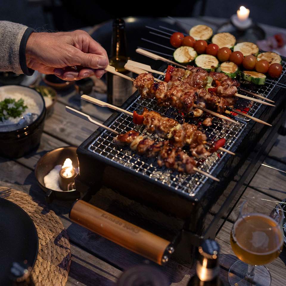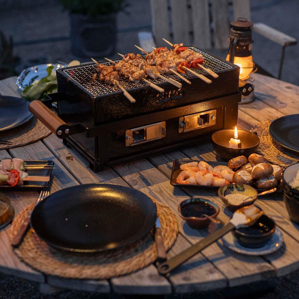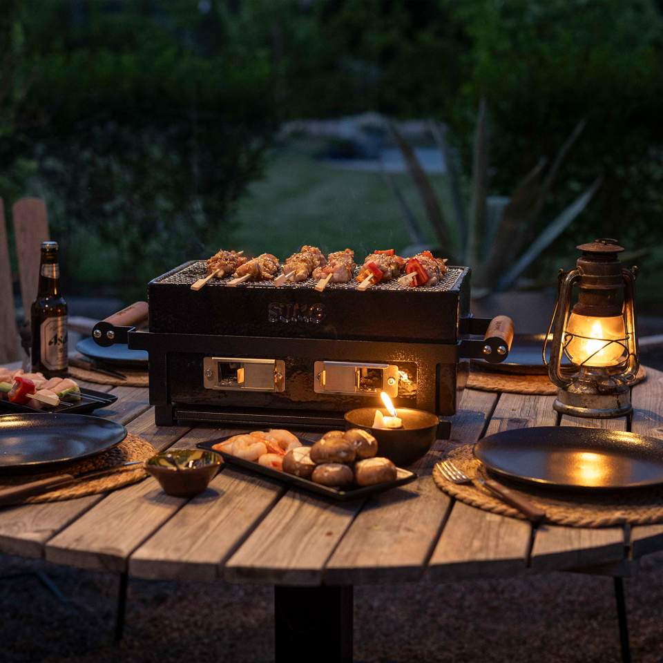 Sumo Hibachi tarjoaa ihanteellisen ilmapiirin yhteiseen ruoanlaittoon ja klassiseen japanilaiseen yakitori-grillaukseen, ja se sopii erinomaisesti parvekkeille, terasseille, rannalle tai retkeilyyn. Sumo Hibachissa on 20 x 40 cm:n grillausala, joten siinä on runsaasti tilaa useiden ruokien samanaikaiseen valmistamiseen, joten se sopii suuremmille perheille ja juhlatilaisuuksiin.