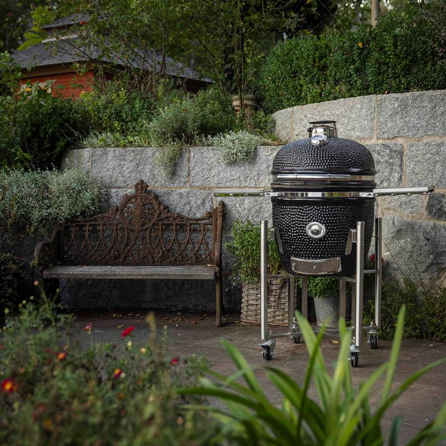 Vankka keramiikka säilyttää lämmön hyvin myös pakkasella, joten voit grillata vuoden ympäri. Tasainen lämmönjakautuminen takaa, että hehku kestää pitkään – myös vähällä hiilimäärällä.