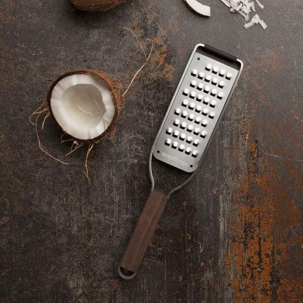 Karkea raastin– Wasabia, parmesan, suklaa, muskottipähkinä ja sipuli.
