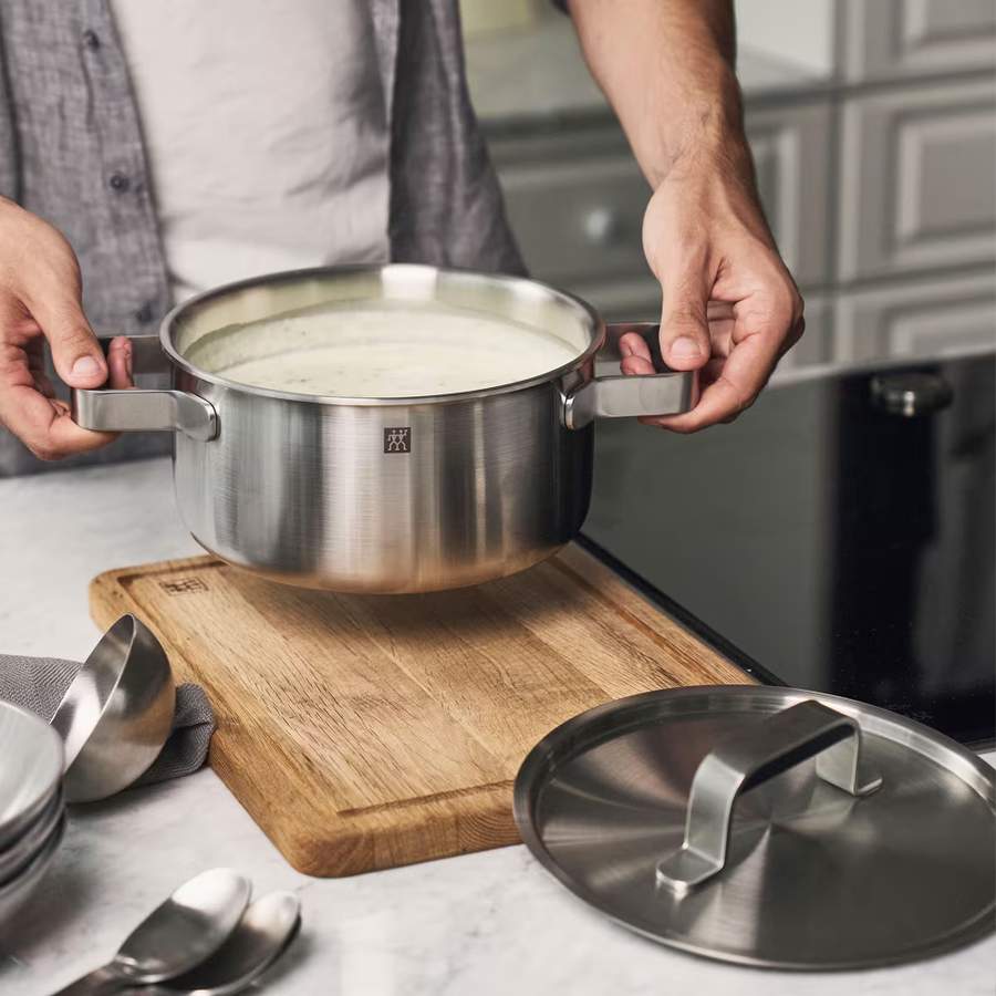 Zwilling jatkaa keittiövälineiden standardin nostamista uusilla sarjoilla ja innovatiivisilla materiaalivalinnoilla keittoastioiden ja paistinpannujen valikoimassaan. Valikoimasta löydät erikokoisia ja erivärisiä kattilasettejä sekä hiiliteräksestä, ruostumattomasta teräksestä ja alumiinista valmistettuja paistinpannuja.